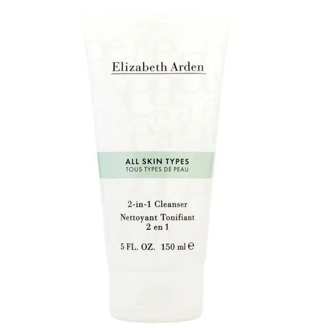 Elizabeth Arden All Skin Types 2-in-1 Cleanser 5 oz is a gentle facial cleanser designed to remove makeup, dirt, and impurities while helping maintain the skin’s natural moisture balance. Its creamy formula effectively cleanses without stripping the skin, leaving it feeling soft, refreshed, and comfortable after each use. Suitable for daily skincare routines, this versatile cleanser works for all skin types and helps promote a healthy-looking, radiant complexion. Elizabeth Arden's dual-action cleanser removes makeup and impurities in one step, making it ideal for all skin types. This lightweight formula gently cleanses without over-drying, leaving skin refreshed and prepped for your skincare routine. The convenient 5 oz size is perfect for daily use or travel. Dermatologist-tested and trusted by beauty enthusiasts worldwide, this versatile cleanser delivers professional results at home. UPC: 085805389840.